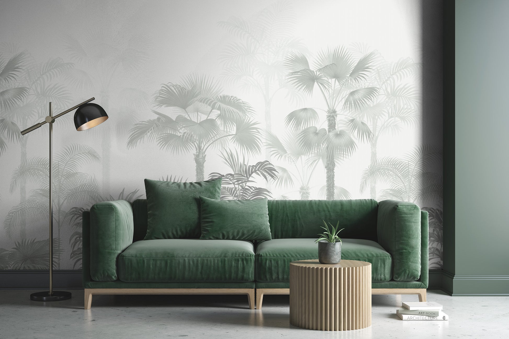 Transform your space into a tranquil oasis with our Jungle wall mural. Featuring vintage palm trees in subtle shades of gray, this mural will bring a touch of nature indoors. Create a calming atmosphere and add a touch of elegance to any room.