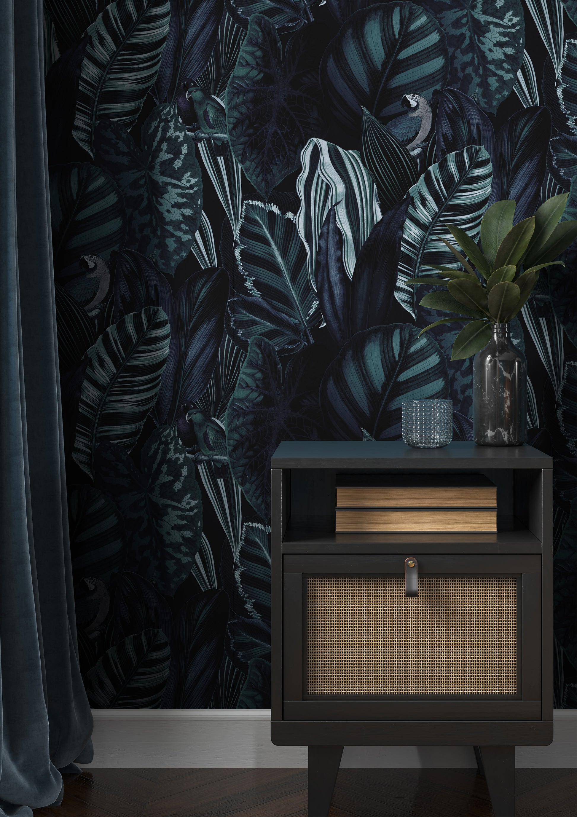 Create a stunning tropical paradise in your home with our 'Tropical Leaves Blue' wall mural. Featuring lush green leaves and colorful birds, this mural is inspired by the beauty and biodiversity of tropical rainforests. Transform any room into a serene oasis with this nature-inspired design.
